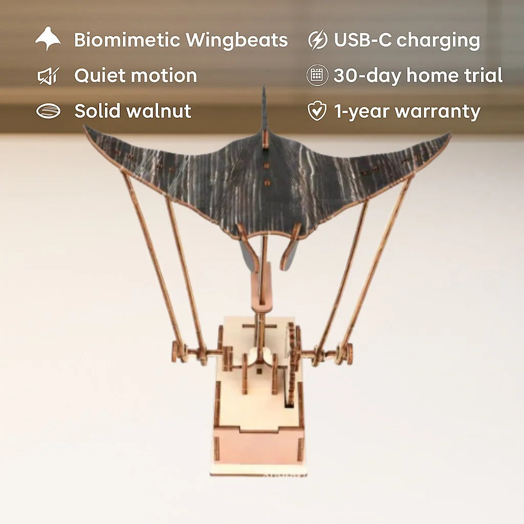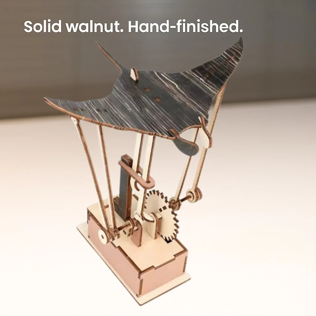 Bring the ocean’s silent ballet to your space. Our walnut manta ray, powered by interlocking gears, glides with every turn of the crank—transforming stress into a calm, flowing rhythm.
