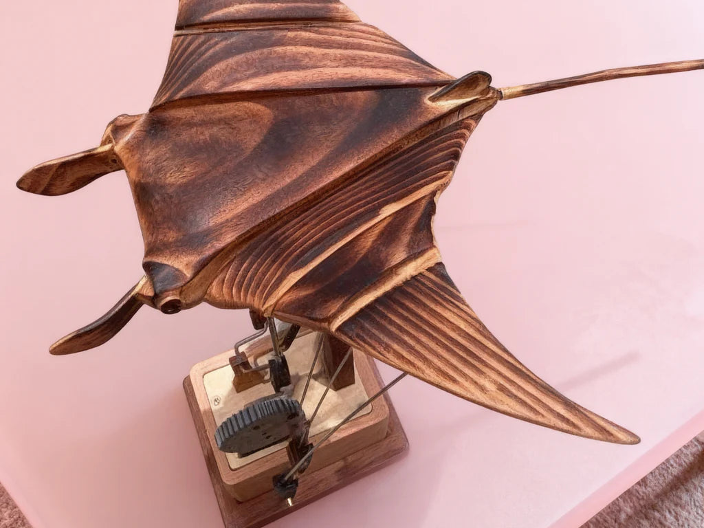 Each Manta Ray is handmade with care, carved from solid wood and detailed by hand. Built with hidden mechanisms, it moves in calm rhythm, a modern creation with the spirit of the sea.